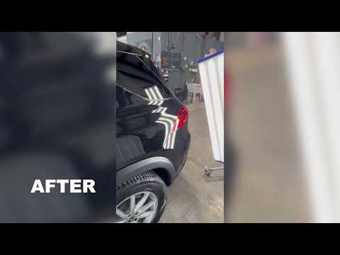 This is Charity’s 2019 Chevrolet Blazer. She was very upset that she might have to repaint her liftgate after a rogue shopping cart ran into her brand new blazer. Elite Dent Company was able to repair the nasty dent in the body line returning her car to perfection as if the dent never happened.